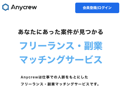 Anycrew(エニィクルー)はエニィクルー株式会社が運営するフリーランス・副業の案件マッチングサービスです。