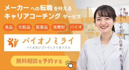 バイオノミライでは、食品・化学・医薬・バイオ業界を中心とした研究職・技術職・専門職に特化したキャリアコーチングを提供しています。