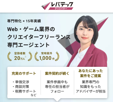そんな中、Web・ゲーム業界に特化したフリーランス向けエージェント「レバテッククリエイター」を利用して案件を獲得する方が増えています。