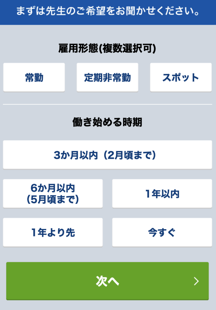 雇用形態・働き始める時期を選択