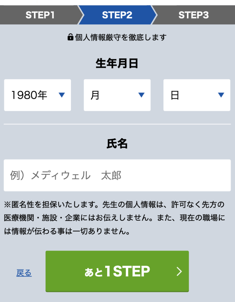 生年月日・氏名を入力