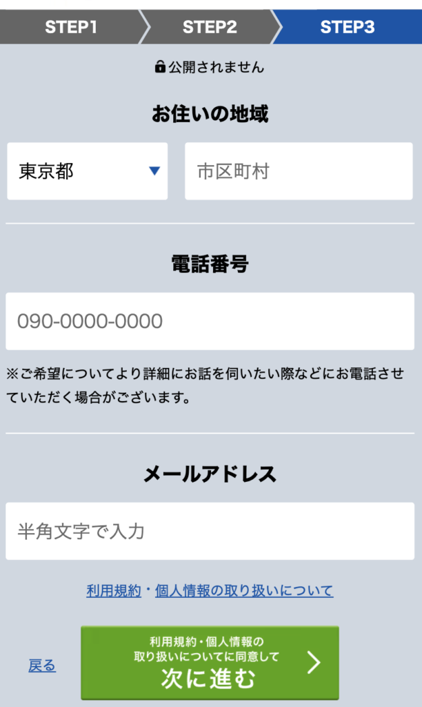 居住地・電話番号を入力