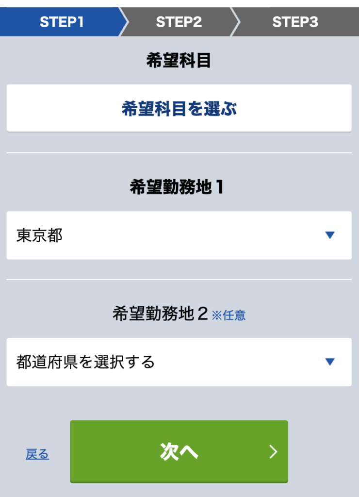 希望科目・希望勤務地を選択