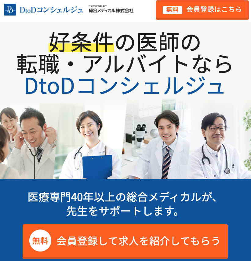 DtoDコンシェルジュは総合メディカル株式会社が運営する医師専門の転職支援サービスです。