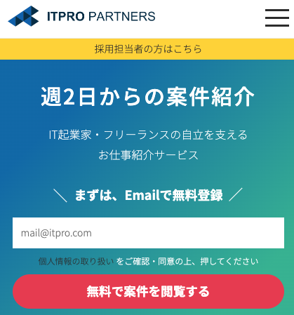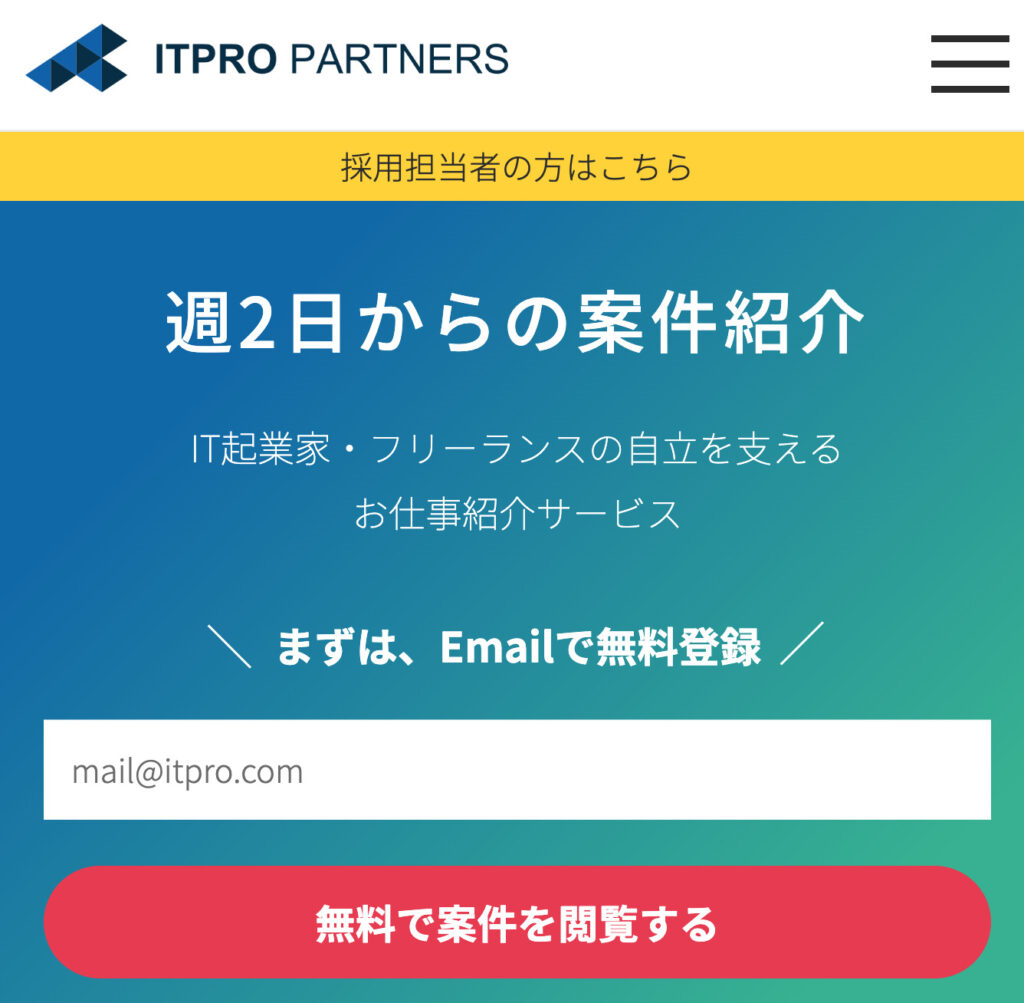 ITプロパートナーズは株式会社Hajimariが運営するフリーランスの案件紹介サービスです。