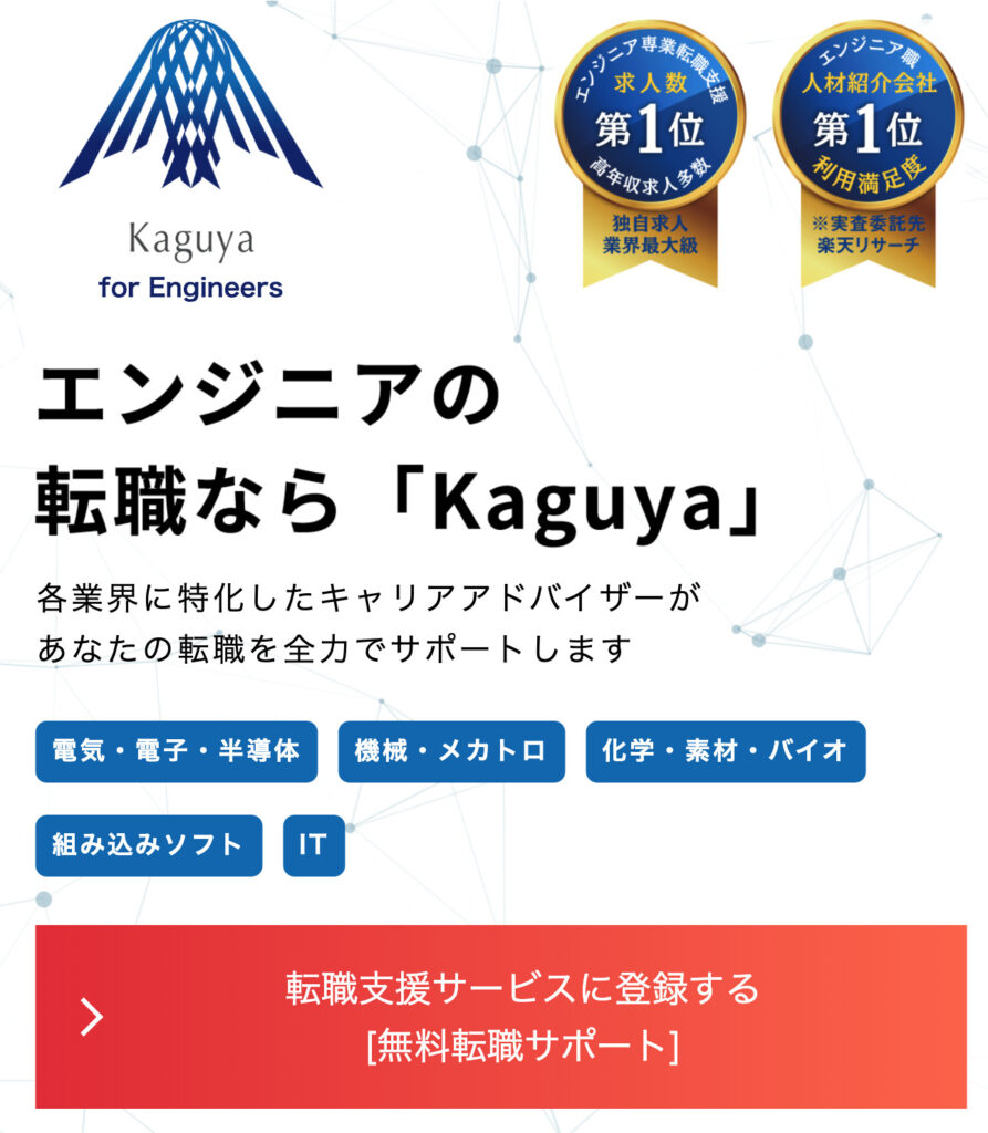 数ある転職サイト・エージェントの中でも、先端技術やイノベーション領域に強いエンジニア転職支援サービス「Kaguya」は、多くのエンジニアに利用されています。