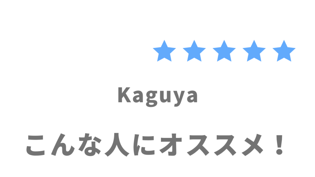 この記事では、Kaguyaの特徴や強み、実際に利用した人の評判や口コミ、メリット・デメリットなどを詳しく解説します。