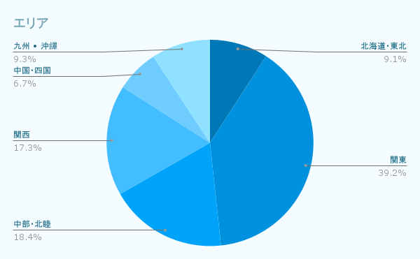 特に関東エリアでは約847万件と最も多くの求人があり、都市部での仕事探しに適しています。