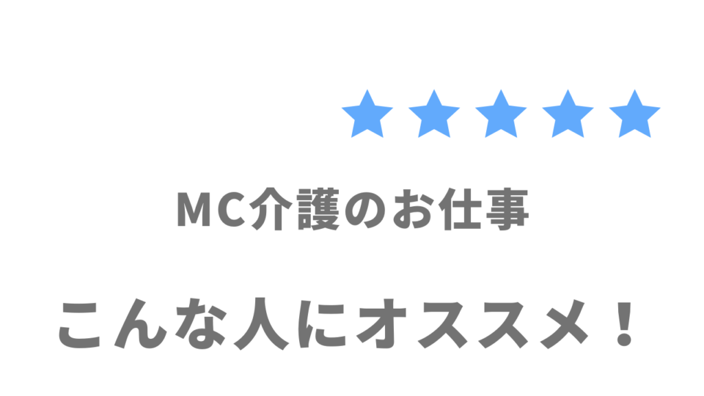 この記事では、「MC介護のお仕事」の特徴や、利用するメリット・デメリット、実際の口コミや評判などを詳しく解説します。