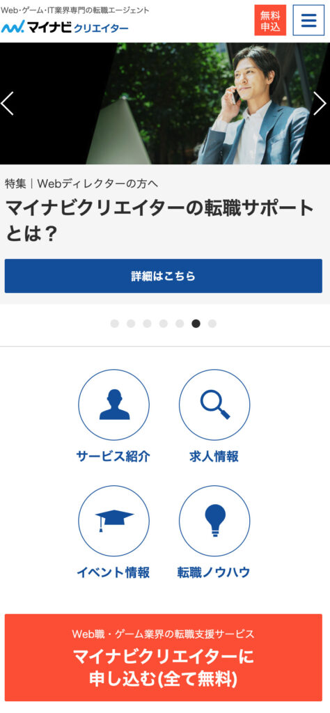 業界トップクラスの求人数を保有しているのでウェブ・ゲーム業界へ転職を考えている人はマイナビクリエイターの利用をおすすめします。