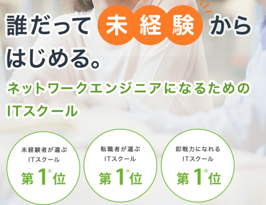 未経験、知識ゼロからインフラエンジニアに転職したい方にオススメです。 最初の1ヶ月は講義とCCNAの取得を目指します。現地とオンライン選べますが、私は現地で受講しました。 講義内容は、pcについて何も知らなくてもついていけます。 また実習は、他の受講生と一緒に実機を扱うので、現場の雰囲気が味わえます。 2ヶ月目に転職活動をします。 サポートの方が一緒に履歴書や経歴書の作成、添削、集団・個別面談の練習をしてくださいます。面談の日程調整なども全てしてくれるので、練習に時間を使えます。 未経験からの転職で不安も多かったが、親身になって相談に乗って貰い、私の長所や短所を指摘して頂き、都度励ましていただけました。 無料でサポートをして頂けるので、インフラエンジニアに興味がある方は一度相談してみると良いと思います。