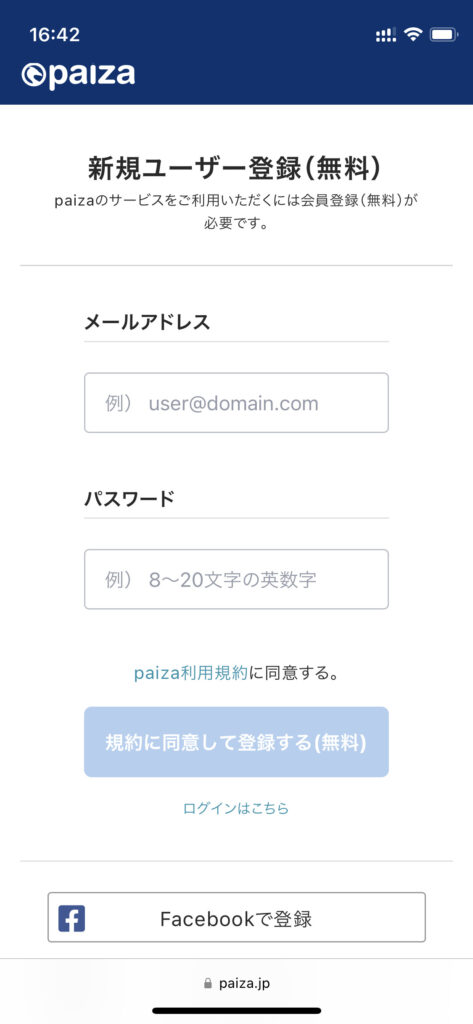 • Facebookで登録
