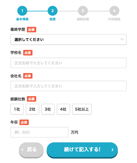 経験社数・年収を入力