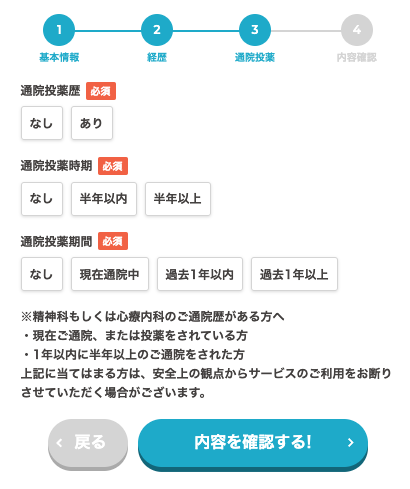 通院投薬歴の有無を選択