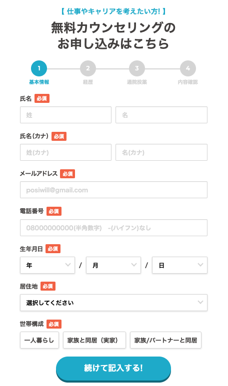 ポジウィルキャリアの登録方法