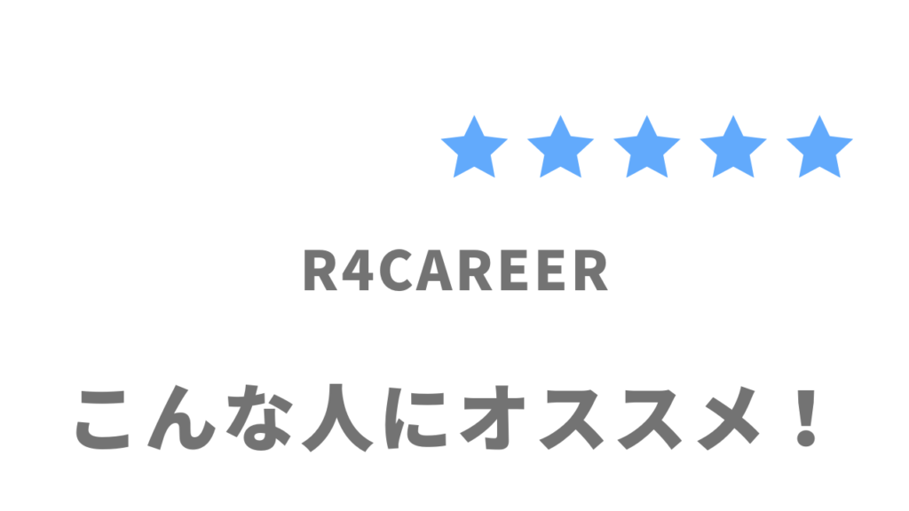 この記事では、R4CAREERの特徴やメリット・デメリット、口コミなどを詳しく解説していきます。