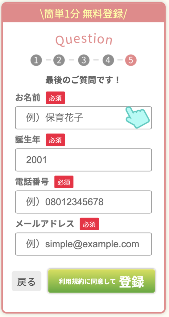 公式サイトから60秒で簡単登録