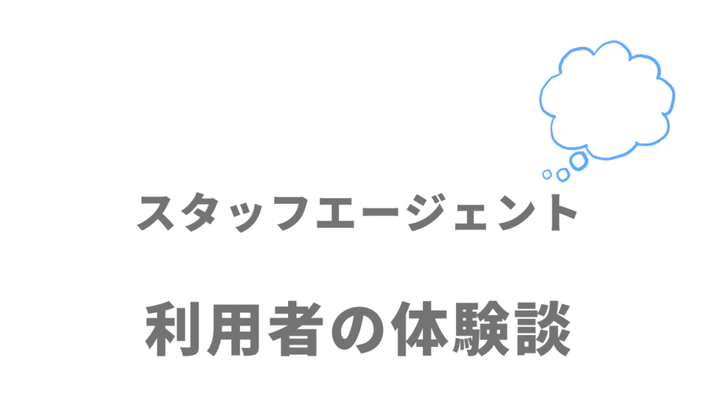スタッフエージェントさんでは色んな営業さんの方がいらっしゃいますが、皆さん感じが良く、面接時もきちんと職歴やアピールもしていただけるので心強いです。