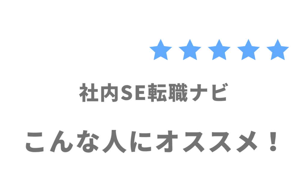 社内SE転職ナビはSI、社内SE、Webエンジニア、ゲーム業界にお勤めの方、 エンジニアの人の転職を考えている人は利用がおすすめです。