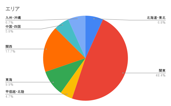 特に関東エリアは約6万9千社と最多で、都市部を中心に幅広い業界の企業が集まっています。