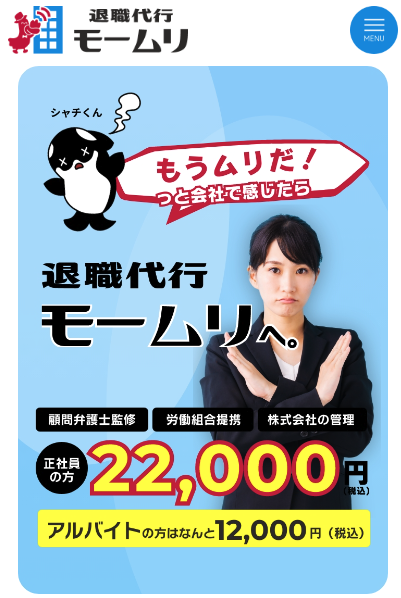 | おすすめポイント | 退職成功率100%の退職代行サービス 最短30分・即日対応のスピード 後払いにも対応可能 弁護士監修+労働組合連携で安心・確実に退職 退職後の必要書類などのフォロー 全額返金保証 LINE無料相談が充実 |