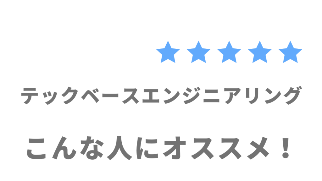 テックベースエンジニアリングは就活支援付きでエンジニア就職を目指す人に利用がおすすめです。