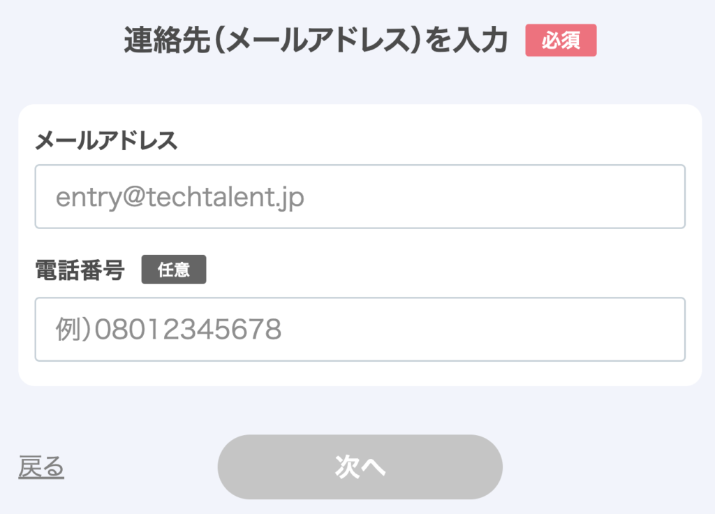 メールアドレス・希望や備考を入力