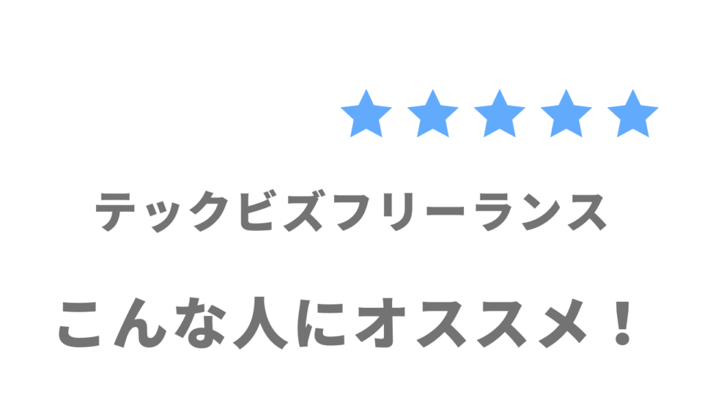 テックビズフリーランスはフリーランスの人の好条件の案件探しに利用がおすすめです。
