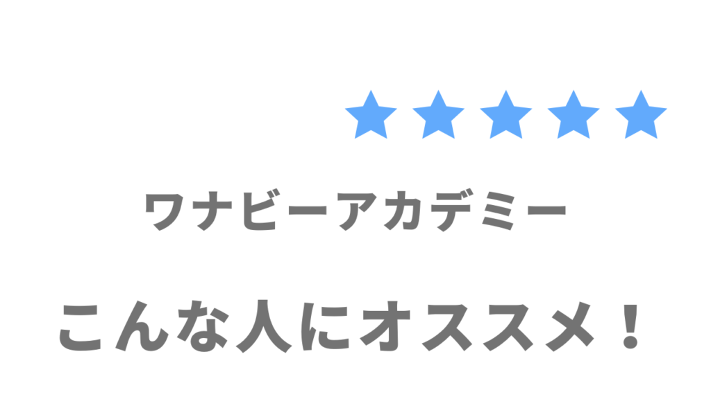 特に、3ヶ月で実務レベルのスキルを習得し、案件紹介制度を活用して実務経験を積める「WANNABE Academy(ワナビーアカデミー)」は、多くの人に選ばれている人気のスクールです。