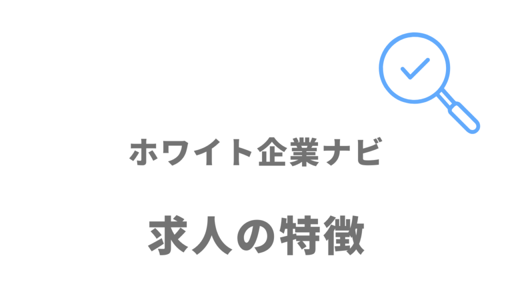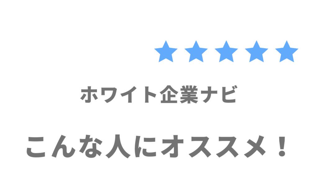 ホワイト企業ナビは「平均残業時間が25時間/月未満」「3年後離職率が30%未満」「年間休日数が120日以上」の条件を満たすホワイト企業のみにアクセスしたい人に利用がおすすめです。