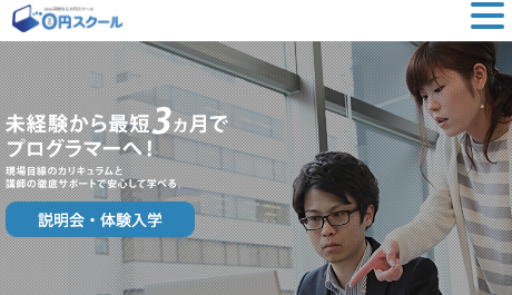 0円スクールは、未経験からでも最短3ヶ月で実践レベルのプログラミングスキルを習得できるスクールです。